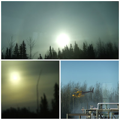 Ring around the morning sun, a chopper outside lunchroom window and a odd shot |